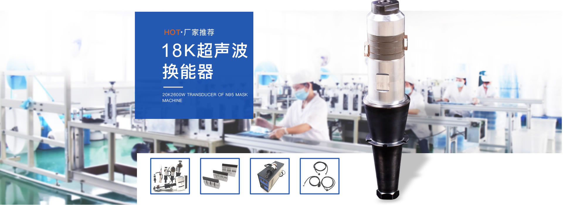 超聲波配套設備包含哪些?超聲波配件由:超聲波發生器、超聲波換能器、超聲波法蘭和超聲波模具為一組。常用于超聲波焊接機、口罩機、貼膜機等焊接機。